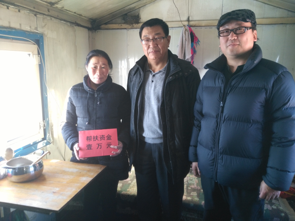 根据市委“大引领”工作要求和鄂温克旗政府下达的帮扶任务,今年5月确定了鄂温克旗辉苏木嘎鲁图5户贫困户为学院定点帮扶对象。学院领导班子及环节干部多次深入贫困户走访慰问,力求帮助牧民解决实际困难。在积极谋划帮扶措施过程中,学院党委将精准扶贫作为践行“两学一做”学习教育的主战场,发挥党员“带头雁”作用,把学习教育与服务群众有机统一,在思想上下功夫,在行动上出实策,针对贫困户缺乏资金及今年夏季旱情、冬季“白灾”致使牧民受灾的实际情况,学院下发了《关于为定点帮扶贫困户冬季雪灾捐款的倡议书》,号召学院副科级以上干部及全体党员伸援手、献爱心,众筹帮扶创业资金,促进牧民提升自我“造血”能力。全体教职员工积极响应,两天内共捐款18320元,学院自筹31430元,共计5万元。