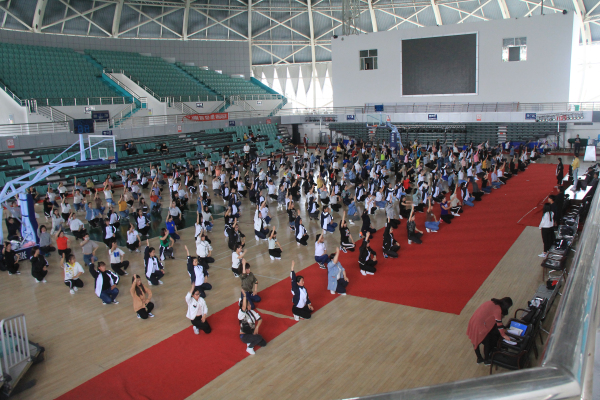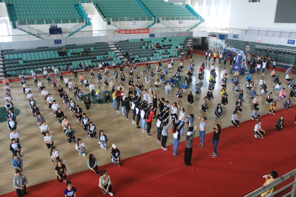 学院全体师生备战民运会,积极排练开幕式大型团体操演出
