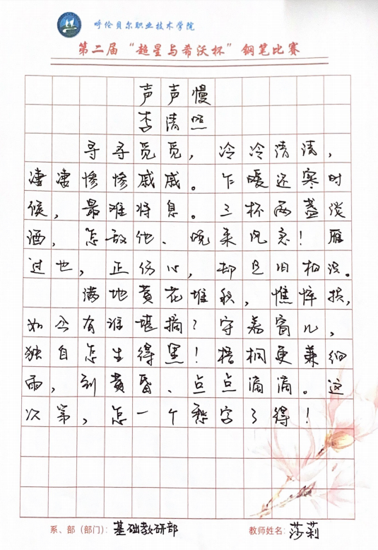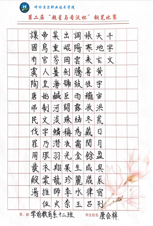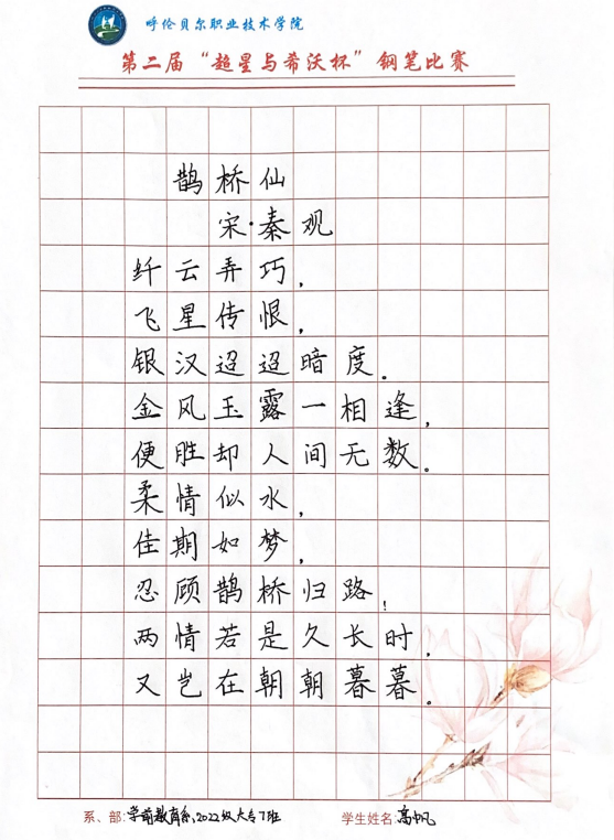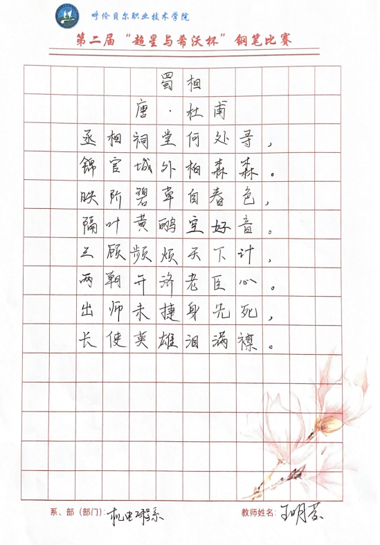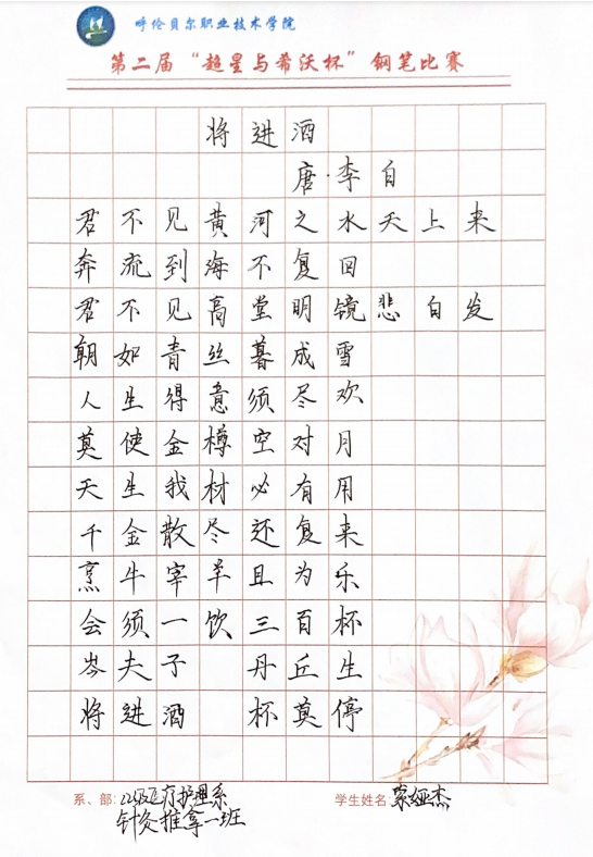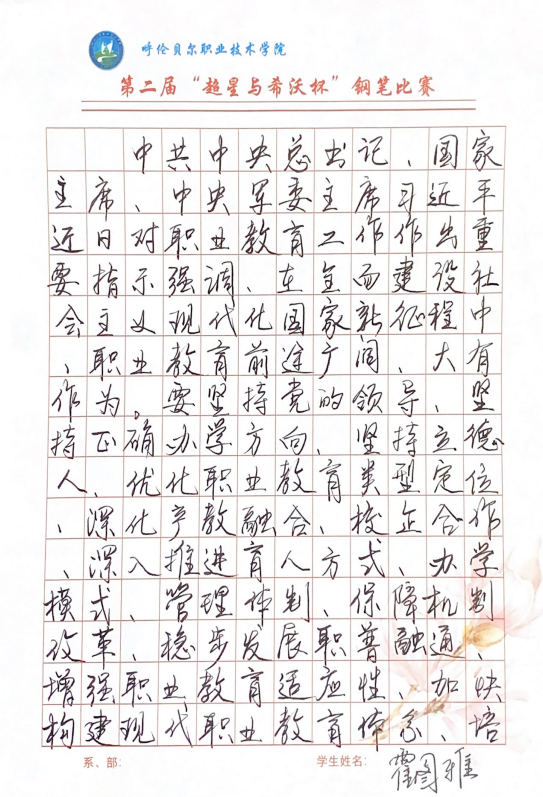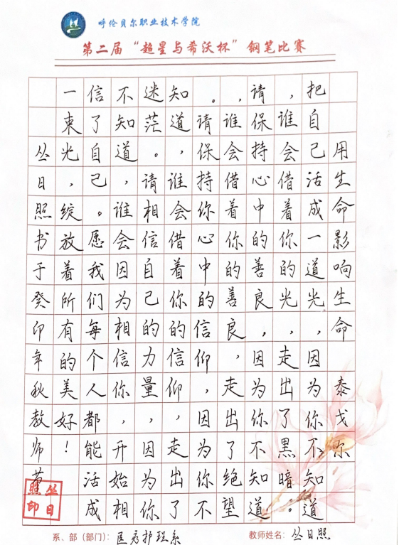书写比赛优秀作品展示 | 呼伦贝尔职业技术学院第二届“超星与希沃杯”钢笔、毛笔书法