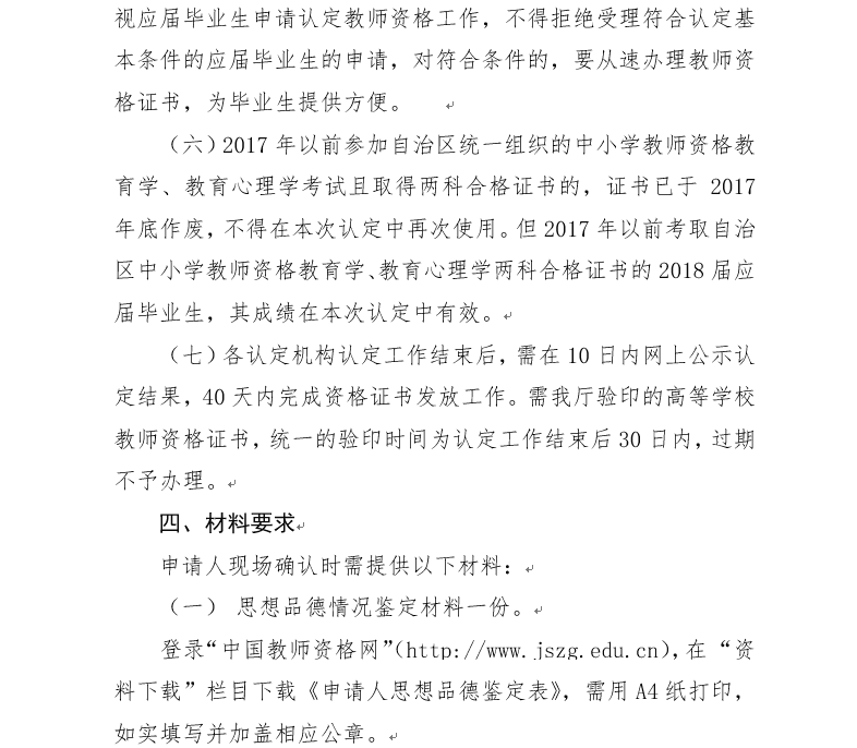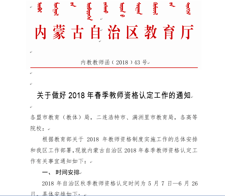 附件一:《关于做好2018年春季教师资格认定工作的通知》内教教师函【2018】43号;